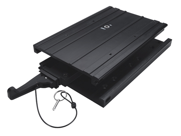 Voor het eenvoudig verwijderen van uw Terrova, PowerDrive V2, PowerDrive of Pontoon boegmotor. Cam-lock design om beweging en geluid te elimineren. Vergrendeling inclusief pin en bevestigingskabel. Bovenste en onderste platen kunnen worden beveiligd met een hangslot (niet inbegrepen). Composiet deksel hecht aan de onderste helft van de bracket wanneer de motor wordt verwijderd, waardoor het dek vrij van obstakels blijft.