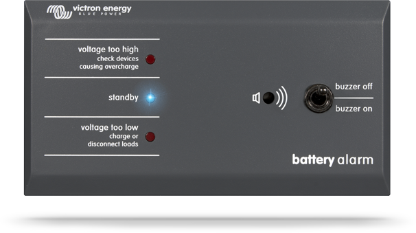 De Battery Alarm is een klein en goedkoop alarmpaneel dat uw accubank in de gaten houdt. Het geeft zowel akoestisch als ook visuele alarmen af en beschikt over een potentiaalvrij contact met normaal open en normaal gesloten contacten. Alarmdrempels en hysteresis zijn programmeerbaar via DIP switches. Zie de handleiding voor meer informatie.