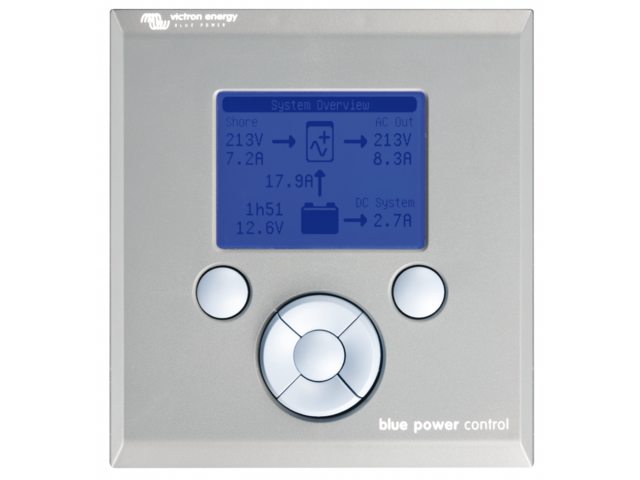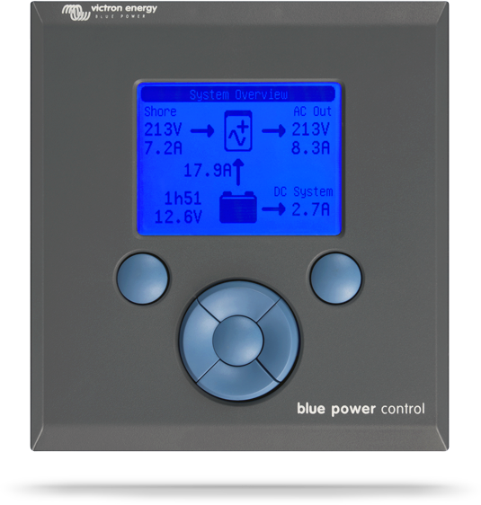 Victron VE Net Blue Power Control GX (BPP). Het Blue Power Paneel GX is identiek aan het Blue Power Paneel 2, maar met een nieuw ontwerp. Een extra voordeel van dit paneel is de eenvoudige installatie: dankzij het bijgeleverde montageframe kan de gebruiker het paneel ofwel via de voorkant ofwel via de achterkant installeren. Het montageframe bedekt bovendien de montagegaten. De behuizing van het GX-paneel is van kunststof, waardoor het paneel lichter is en er moderner uitziet.