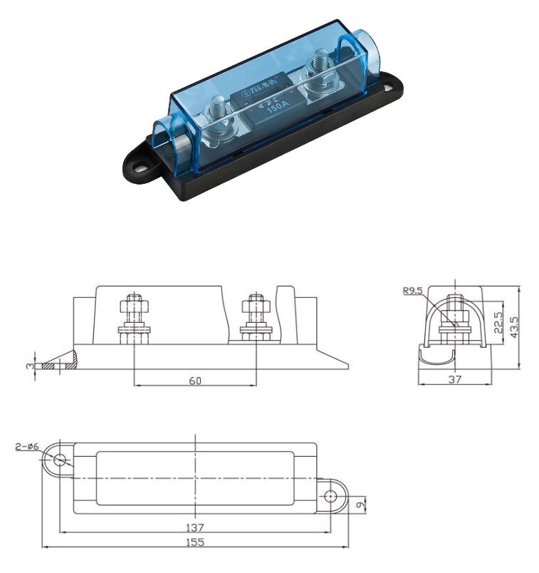 Zekeringhouder ANL met afdekkap tot 250Ah