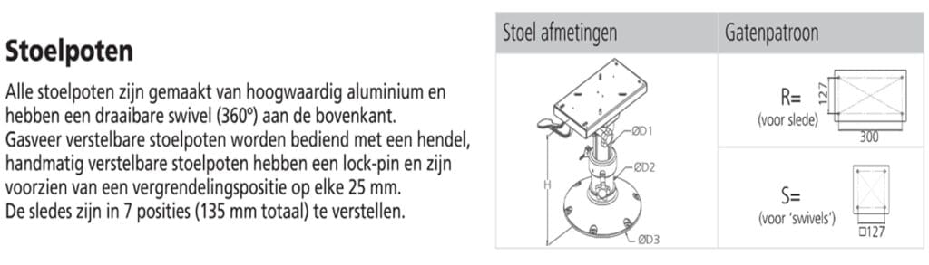 Vetus voetstuk met swivel 360º, is gemaakt van geanodiseerd Aluminium. U kunt dit draaiplateau voor stuurstoelen gebruiken voor iedere stuurstoel die geschikt is met het Gaten patroon S.