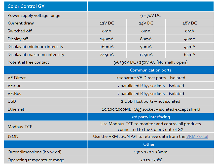 Victron GX VE Net Blue Power Panel color